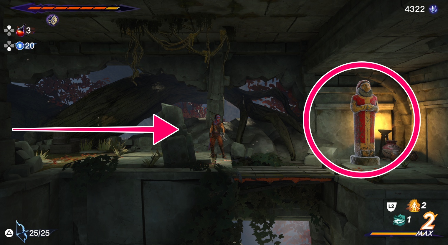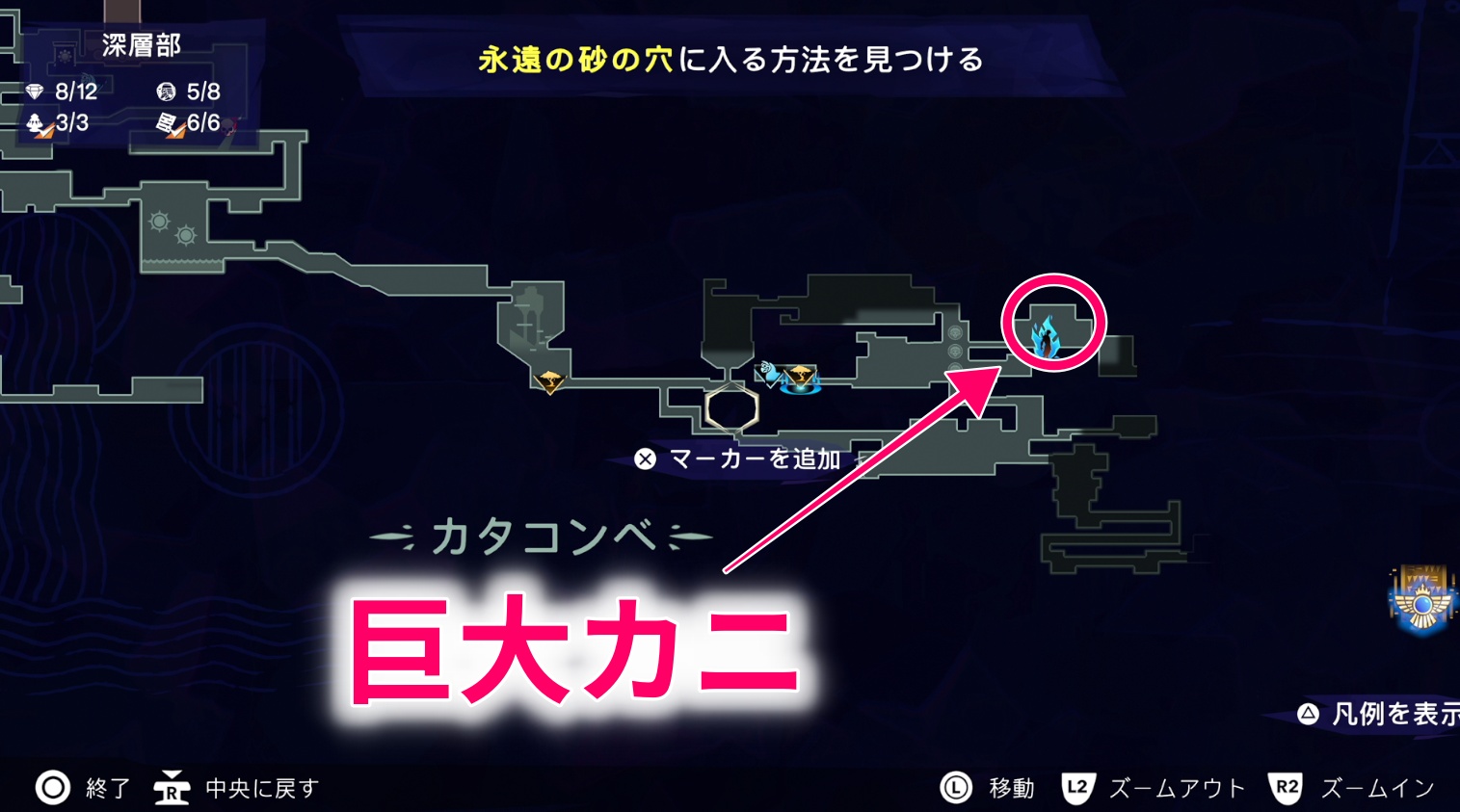深層部にある直近のファストトラベル(カタコンベ)に向かう(上部の画像参照)