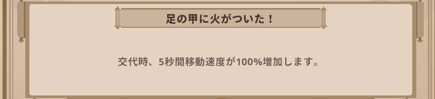 | レジェンド | 爆発物専門家 | 交代時に爆発と同時に登場し魔法ダメージ 交代後5秒間に接触した敵にやけど付与 |