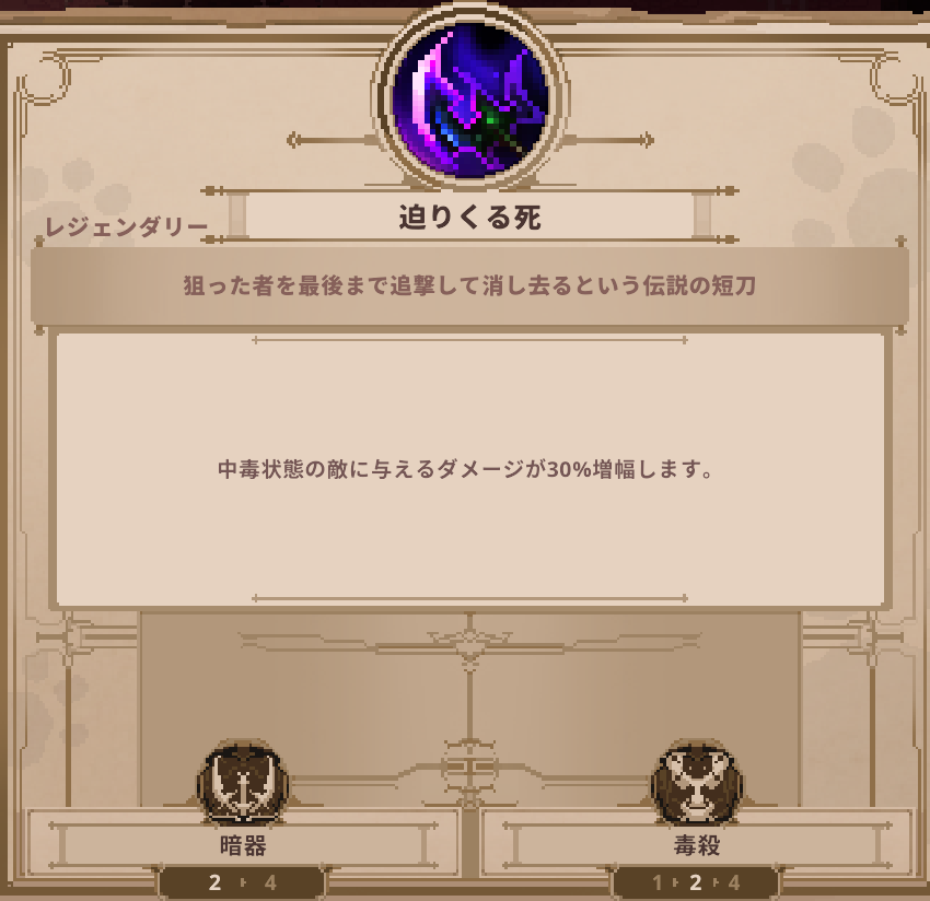 アイテム Skul: The Hero Slayer | 迫りくる死の詳細 アイテム 2025.04.19 このページでは、Skul: The Hero Slayerに登場する迫りくる死の詳細を掲載しています。 迫りくる死のステータス 迫りくる死のスキル ▶️アイテム一覧 に戻る
