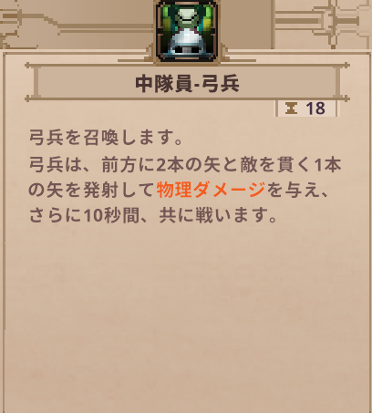 | レジェンド | カーリアン司令官 | 精神ゲージ最大時ボタン入力で中隊員が7秒間攻撃、物理攻撃力+30% 交代時、10秒間部隊員3人召喚 |