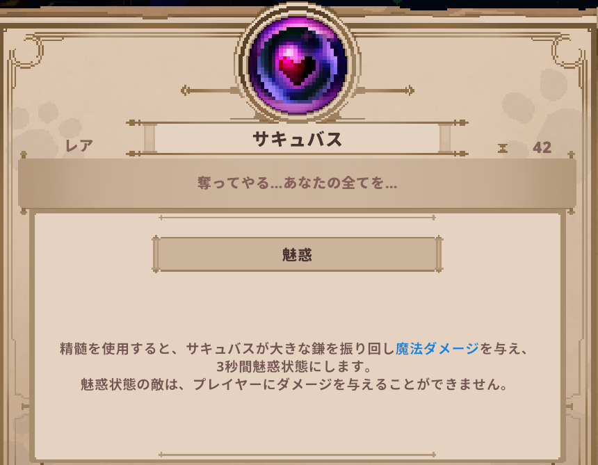精髄 Skul: The Hero Slayer | サキュバスの詳細 精髄 2025.04.20 このページでは、Skul: The Hero Slayerに登場するサキュバスの詳細を掲載しています。 サキュバスのステータス ▶️精髄一覧 に戻る