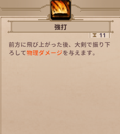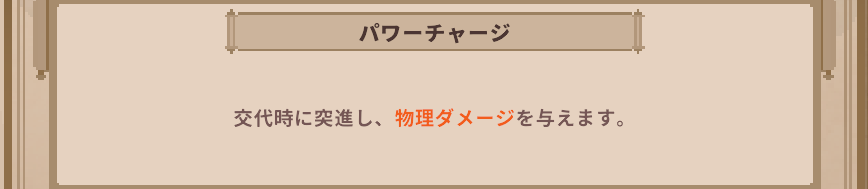 | ユニーク | グラディエーター | スキルの精神集中の完了後に攻撃する際の被ダメージ受けない ダッシュで精神集中キャンセルできる 交代後8秒間、精神集中速度が大きく上昇 |