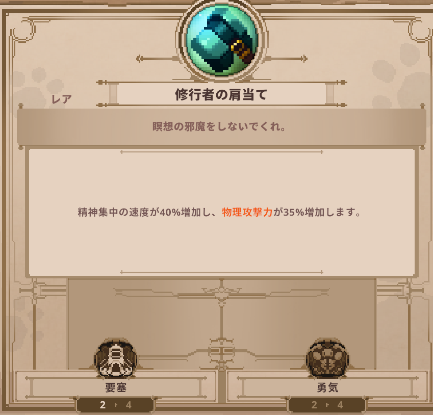 アイテム Skul: The Hero Slayer | 修行者の肩当ての詳細 アイテム 2025.04.17 このページでは、Skul: The Hero Slayerに登場する修行者の肩当ての詳細を掲載しています。 修行者の肩当てのステータス 修行者の肩当てのスキル ▶️アイテム一覧 に戻る