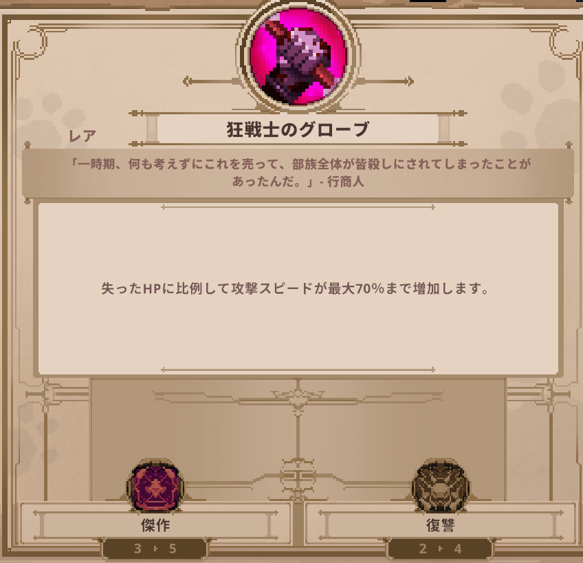 アイテム Skul: The Hero Slayer | 狂戦士のグローブの詳細 アイテム 2025.04.17 このページでは、Skul: The Hero Slayerに登場する狂戦士のグローブの詳細を掲載しています。 狂戦士のグローブのステータス 狂戦士のグローブのスキル ▶️アイテム一覧 に戻る