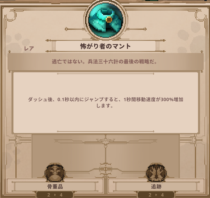 アイテム Skul: The Hero Slayer | 怖がり者のマントの詳細 アイテム 2025.04.17 このページでは、Skul: The Hero Slayerに登場する怖がり者のマントの詳細を掲載しています。 怖がり者のマントのステータス 怖がり者のマントのスキル ▶️アイテム一覧 に戻る