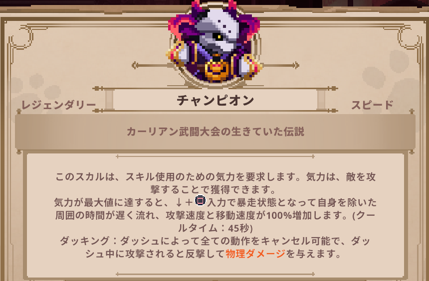 スカル Skul: The Hero Slayer | チャンピオンの詳細 スカル 2025.04.18 このページでは、Skul: The Hero Slayerに登場するチャンピオンの詳細を掲載しています。 チャンピオンのステータス チャンピオンのスキル ▶️スカル一覧 に戻る