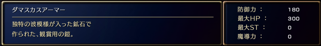 ダマスカスアーマーのステータス