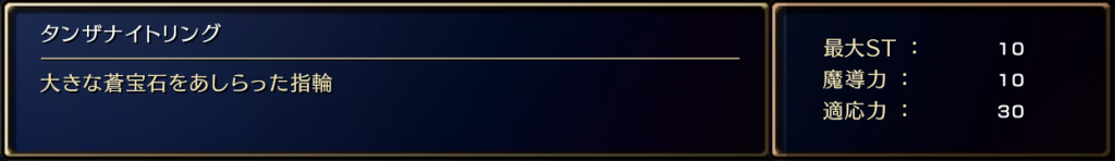 アクセサリー アストリブラ | タンザナイトリングの詳細 アクセサリー 2025.04.292025.05.11 このページでは、アストリブラのタンザナイトリングについてのステータスや入手方法などの詳細を掲載しています。 タンザナイトリングのステータス タンザナイトリングの入手方法 購入 店:アネスタ全域のモキュンショップ 必要素材 ・ミスリル×1・バッタの羽×1・虫の足×1 ➡️アクセサリー一覧 に移動する