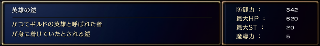 英雄の鎧のステータス