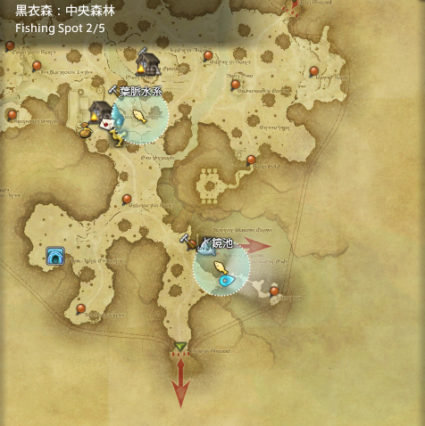 ブラスローチが釣れる場所は「黒衣森:中央森林」の「鏡池」です。