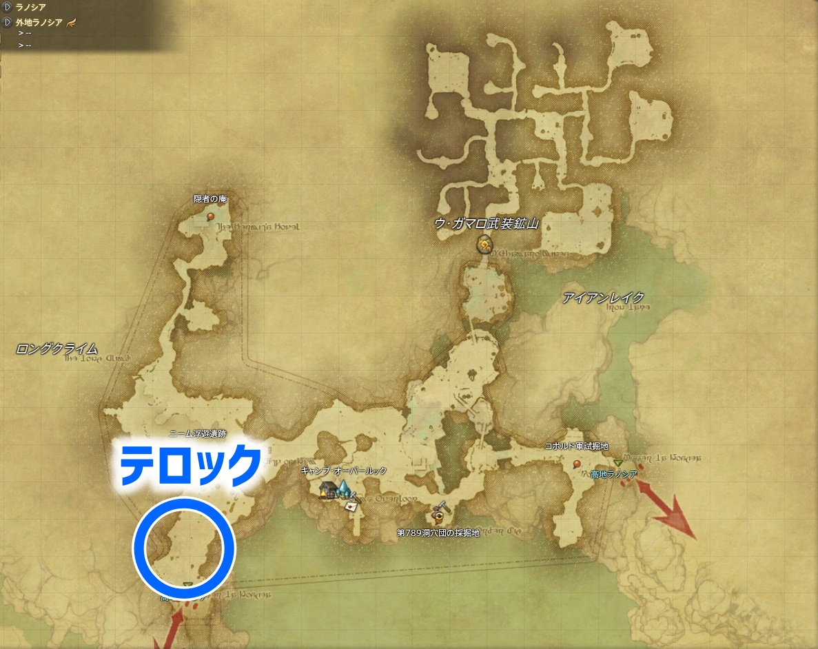 | テロック | ![]() | ![]() 外地ラノシア X:14.4 Y:19.1 ほか |