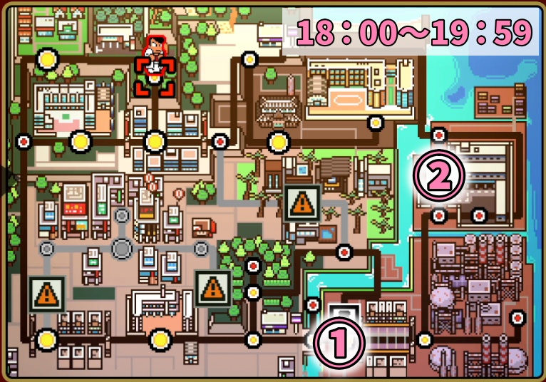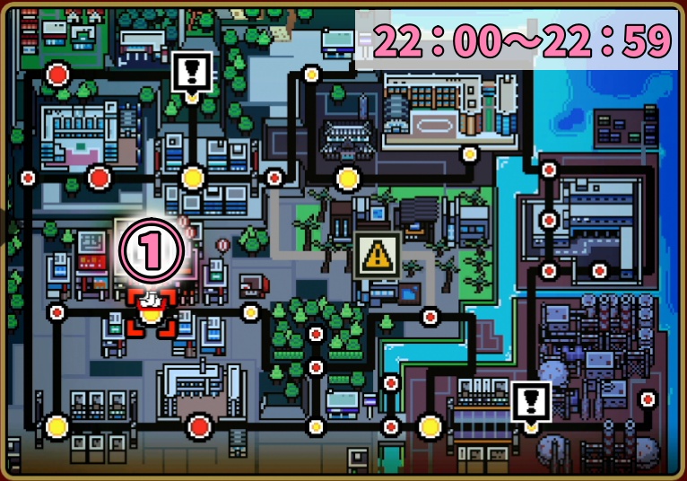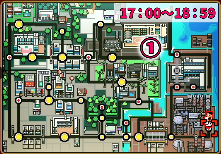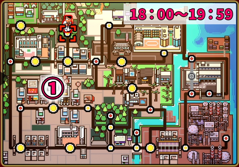 | ② | 天見台3丁目のテクノスランドに移動する | イベント【13:連勝阻止!】 選択肢『いっちょやってやるか』を選択する FoDDミニゲームで勝利する |