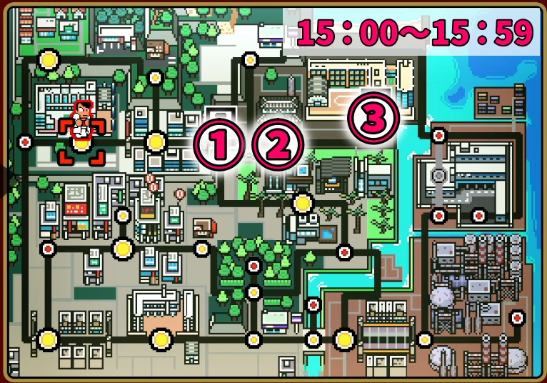 本作はゲーム内で時間が流れており、基本的に各イベントはその時間内だけにしか現れません。
